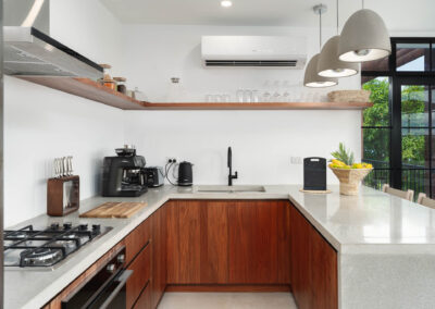 Cook, entertain, and live in style – A modern kitchen and living area, transformed with custom cabinets, that seamlessly blend form and function.